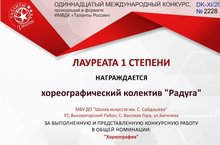 Поздравляем хореографический коллектив "Радуга" и их руководителя Галиуллину Рамилю Юнысовну, ставшими Лауреатами 1 степени на 11 - м Международном конкурсе "Таланты России".