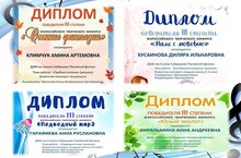 Учащиеся Дубъязского отделения ДШИ стали победителями во Всероссийском конкурсе, посвященного Дню матери "Из тысячи слов земли и океана особая судьба у слова МАМА", получив 7 дипломов I степени и 1 диплом II степени! (преподаватель Сибгатуллина Е.И ) Молодцы! Так держать!