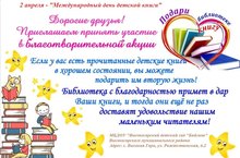 В рамках праздника "Международный день детской книги", который ежегодно отмечается 2 апреля, объявляется акция "Подари книгу библиотеке".