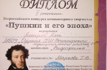 28 марта 2018 года учащиеся школы приняли участие в Международном конкурсе “Пушкин и его эпоха”, который проходил в городе Набережные Челны. Амиров Али получил Диплом 2 степени, Крадинова Аделина- Диплом 3 степени Руководитель Маркова Г.В. Поздравляем! Желаем дальнейших успехов!