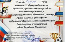 Бүген, оборона- күләм айлык кысаларында, патриотик тәрбия бирү максатыннан, районда пневматик мылтыктан ату ярышы үткәрелде. Безнең мәктәп командасы 3нче урынны алды. Җитәкчесе Минуллин Р.Р. Котлыйбыз!