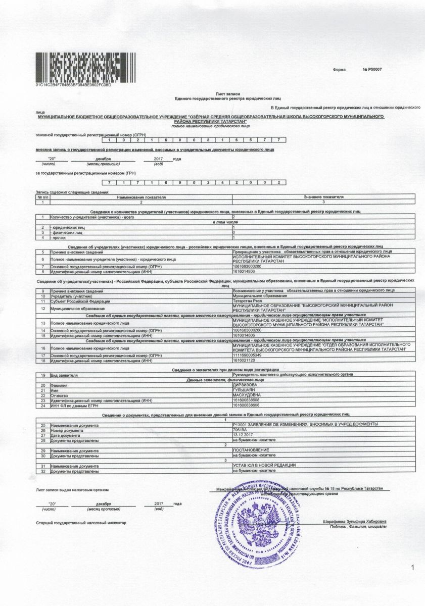 Муниципальное бюджетное общеобразовательное учреждение "Озёрная средняя общеобразовательная школа Высокогорского муниципального района РТ"