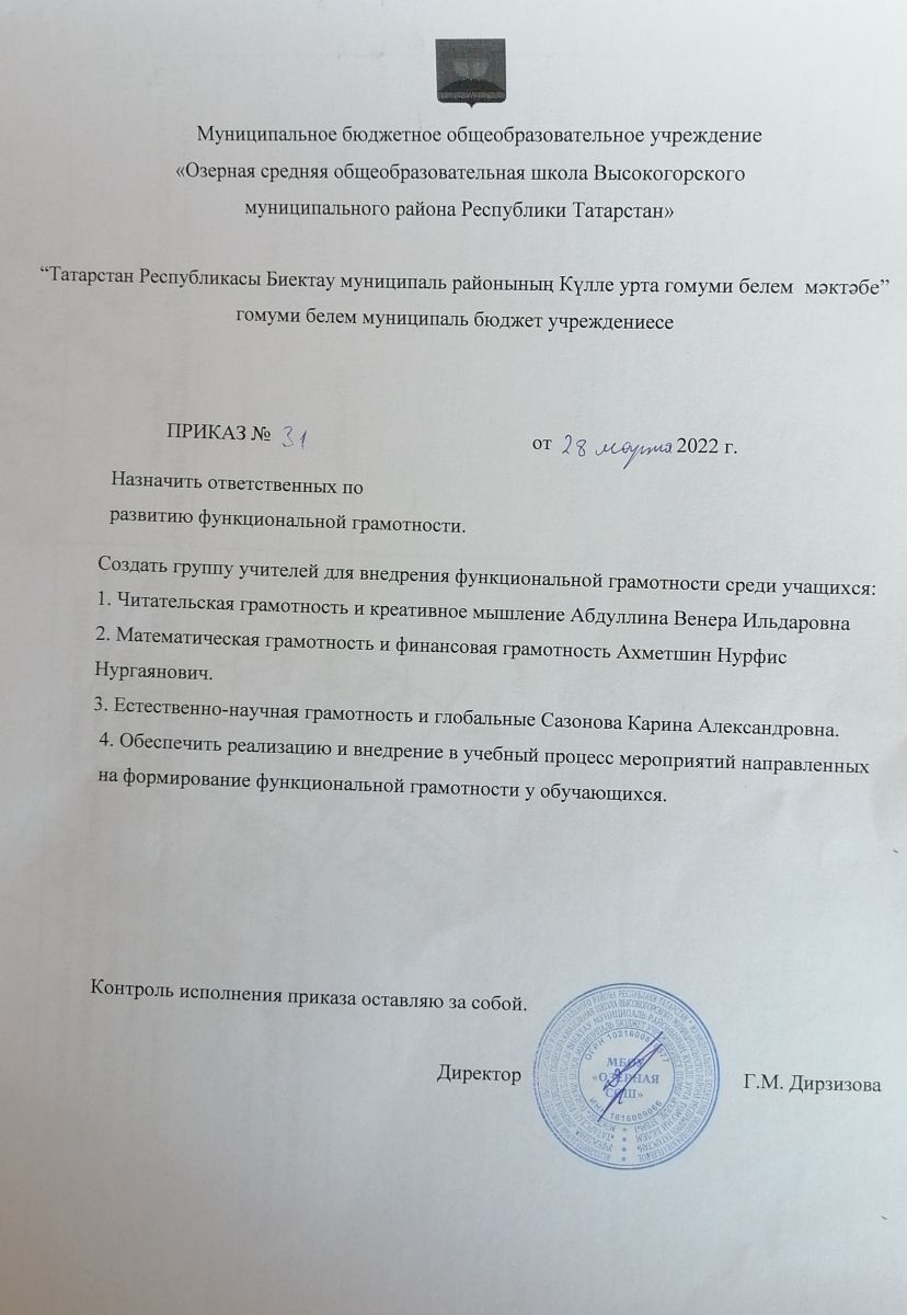 Муниципальное бюджетное общеобразовательное учреждение "Озёрная средняя общеобразовательная школа Высокогорского муниципального района РТ"
