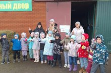 В рамках профориентационной работы воспитанники подготовительной группы «Одуванчики» побывали на экскурсии на конном дворе КФХ Усмановых./Һөнәри юнәлеш бирү эше кысаларында «Одуванчики» әзерлек төркеме тәрбияләнүчеләре Усмановлар КФХның ат ишегалдында экскурсиядә булдылар.