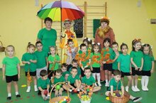 На дворе пасмурно и холодно, не хватает солнечного тепла, а у нас в спортивном зале царила теплая, доброжелательная атмосфера, потому что в средней группе “Сөенеч” и "Тигрята" прошло осеннее музыкально-спортивное развлечение./Ишегалдында болытлы һәм салкын, кояш җылысы җитми, ә безнең спорт залында җылы, игелекле атмосфера хөкем сөрә иде, чөнки "Сөенеч" һәм "Тигрята" урта төркемнәрендә "Осенние забавы" көзге музыкаль-спорт бәйрәм узды".