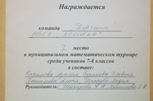 Наши достижения. Команда "Девчата" нашей школы заняли 1 место в муниципальном математическом турнире среди учащихся 7 - 8 классоа! Состав команды: Каримова Азалия, Буранова Эльвина, Хашимова Алина, Шкарубо Лидия. Руководители: Хашимова А.Н., Шакирова Л.Н. Молодцы!!! Гордимся вами.Новых достижений и побед.
