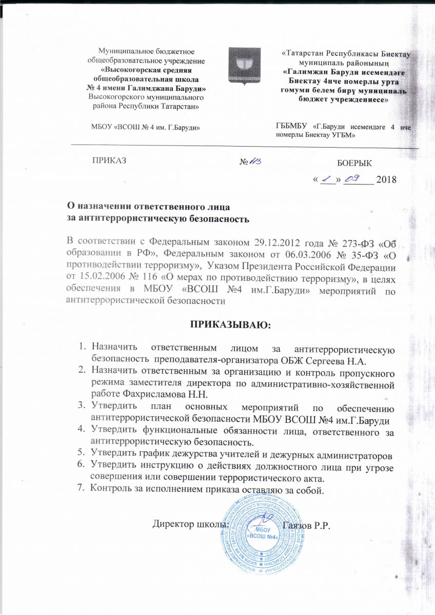 муниципальное бюджетное общеобразовательное учреждение "Высокогорская средняя общеобразовательная школа №4 им.Г.Баруди Высокогорского муниципального района Республики Татарстан"