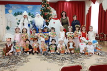 По сугробам высоким шагая, дошел Дед Мороз и до нашего детского сада. Пришел он не один, а привел с собой сказочных героев - Шурале, Бабу - Ягу. Ребята обрадовались гостям, особенно Деду Морозу. Детишки были такие нарядные, красивые. есь детский сад был окутан сказочным новогодним волшебством!!!