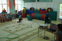 Сегодня в гостях у детей были представители Министерства природных ресурсов и экологии. С детьми было проведено эко занятие на тему: «Всемирный день китов и дельфинов». Дети узнали много интересного о жизни китов и дельфинов, играли в игры,а на экологической тропе показали флешмоб и были засняты с высоты птичьего полета с помощью летающей камеры «квадрокоптер».