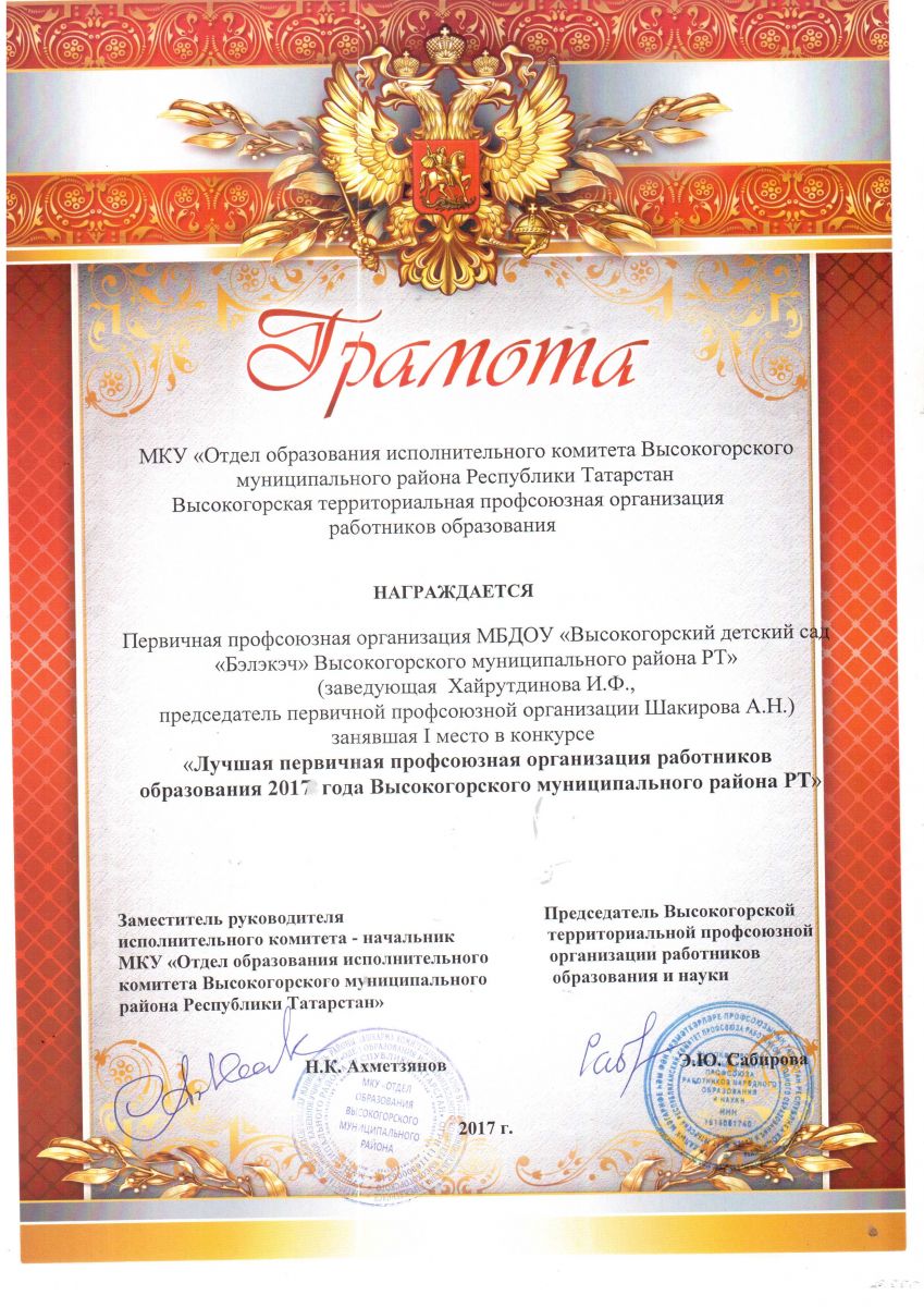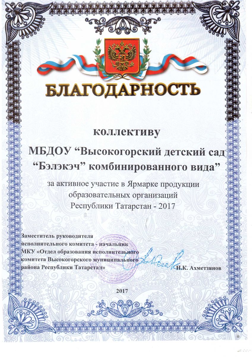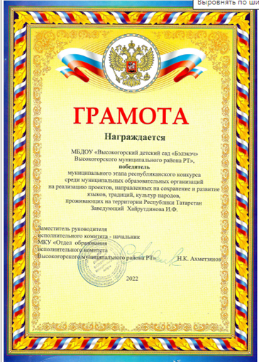 Почетная грамота Исполнительного комитета Высокогорского муниципального района Республики Татарстан