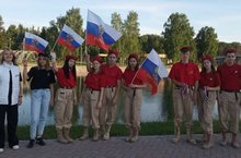 В день России юнармейцы ВПК "Поиск" Бирюлинской СОШ совместно с "Молодой Гвардией" и отрядом "Форпост" провели акцию "Российский триколор"