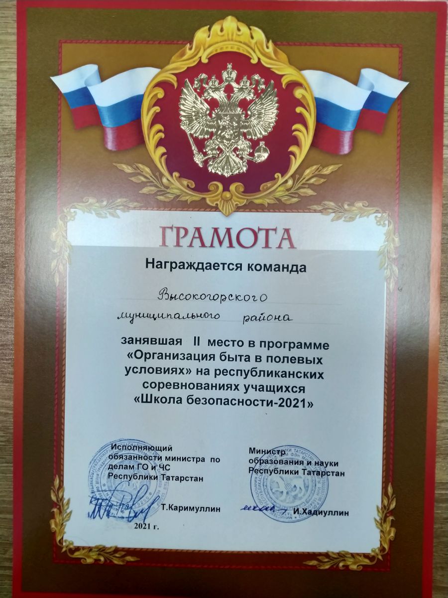 Грамота 2 место в программе Организация быта Школа безопасности 2021.jpg