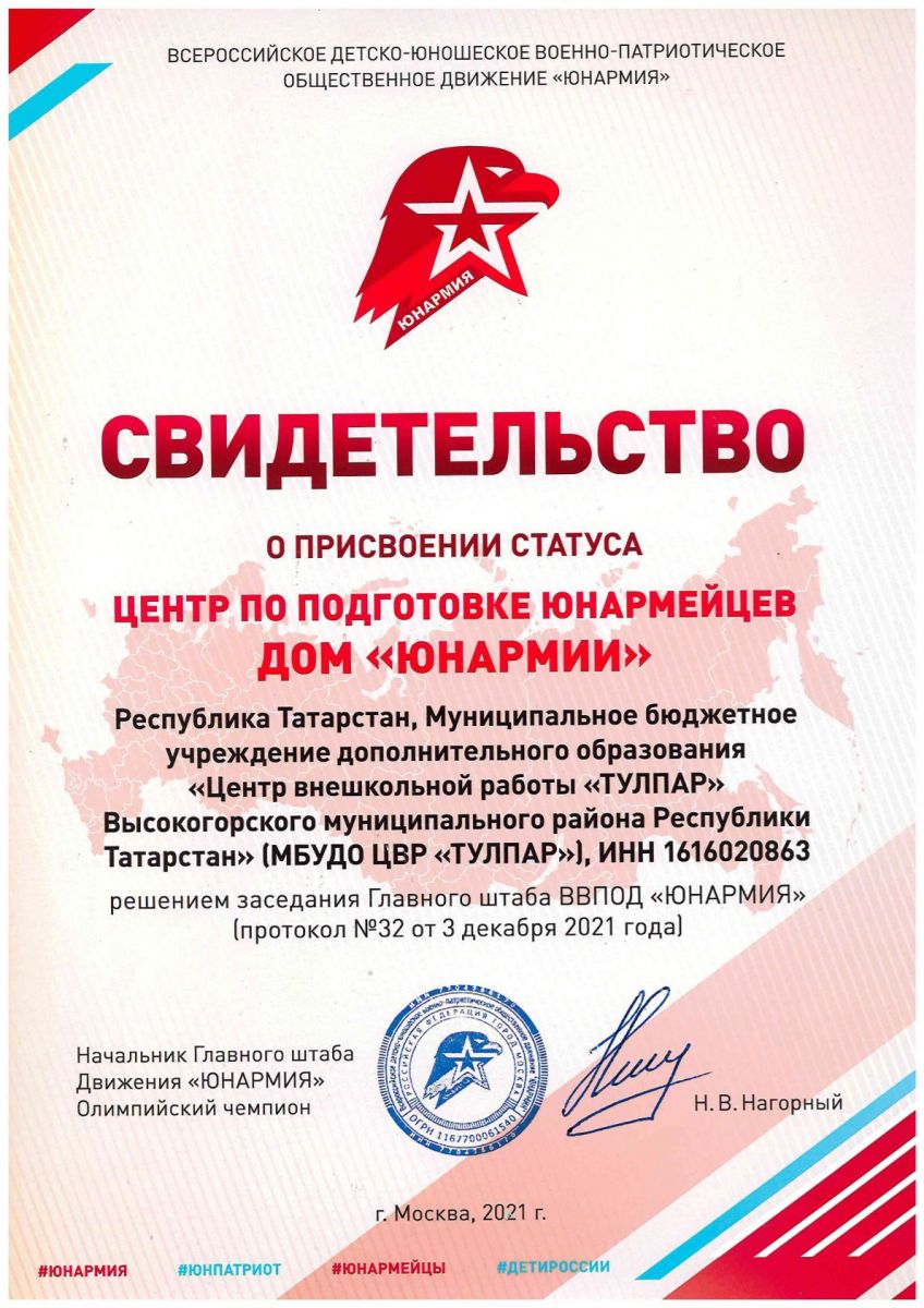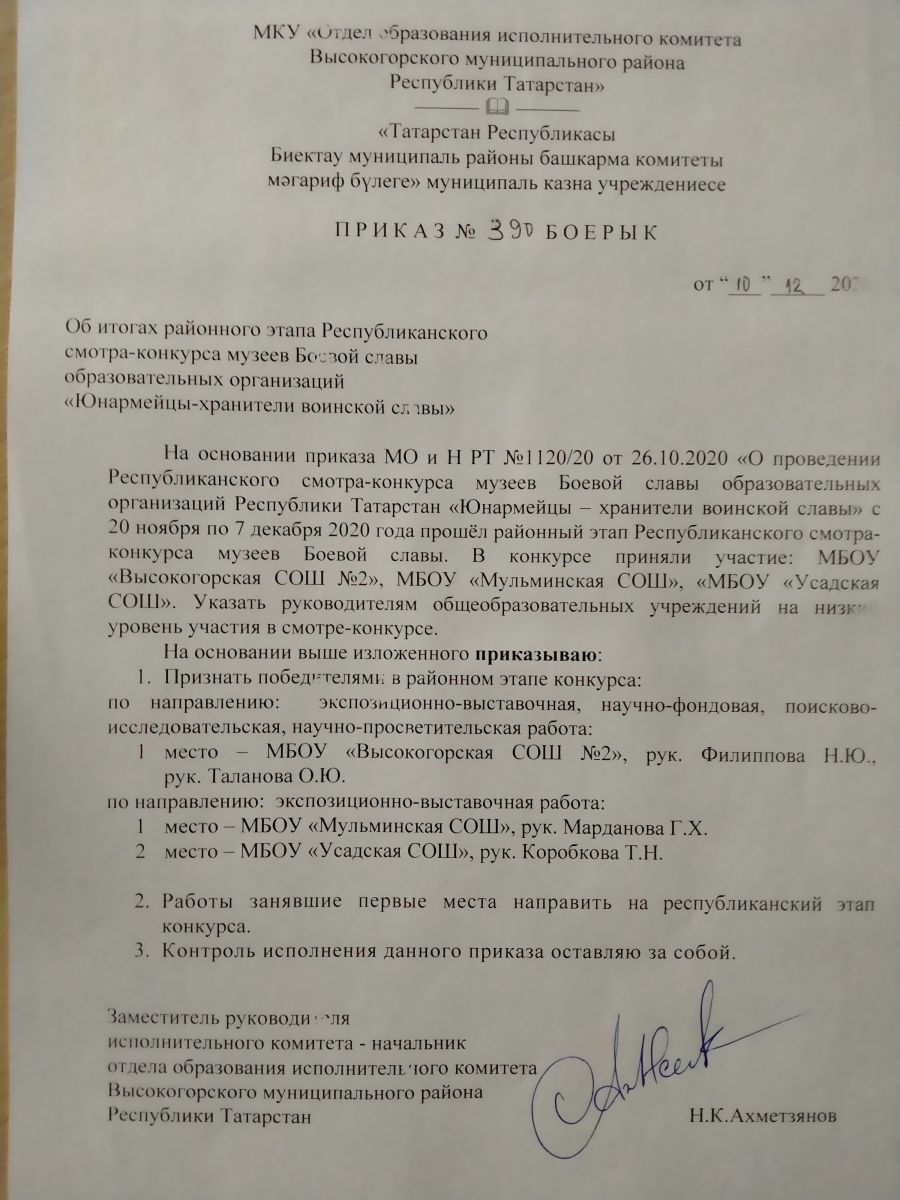 Приказ итоги МО и Н РТ Дом Юнармии Юн.отряд 2021