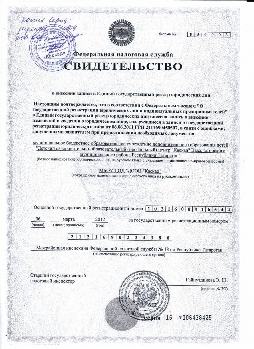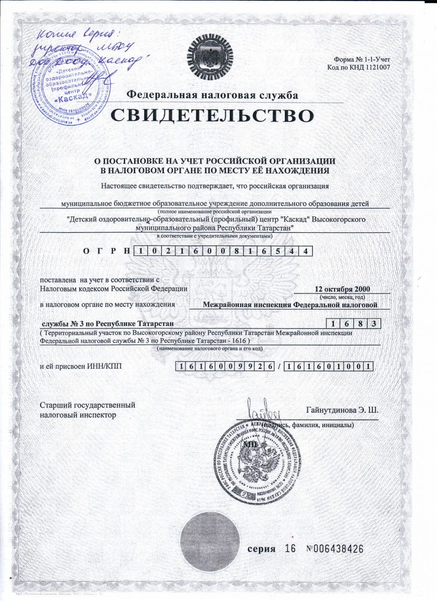 Муниципальное бюджетное учреждение дополнительного образования «Детский оздоровительно-образовательный (профильный) центр «Каскад» Высокогорского муниципального района РТ»
