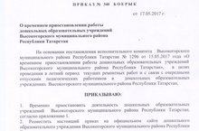 Приказ о приостановлении работы на летний период/ Җәйге чорга ябылу турында приказ 18.05.2017