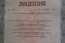 25 сентября 2014 года ДОУ получило лицензию на осуществление образовательной деятельности.