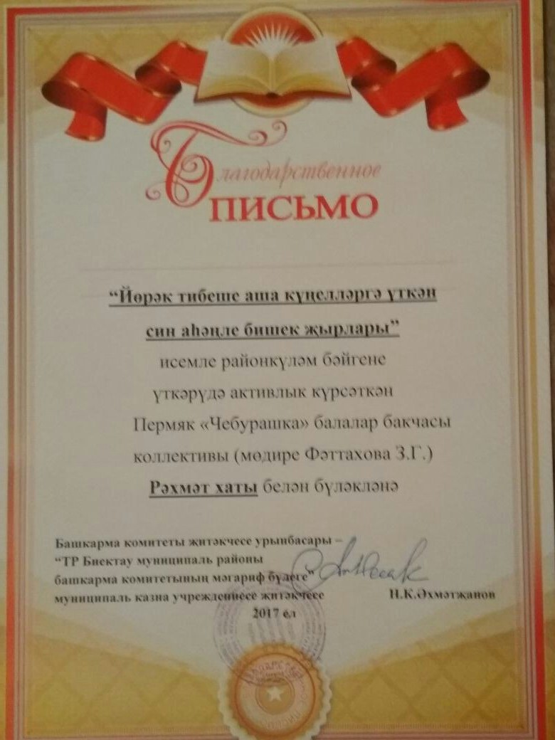 Муниципальное бюджетное дошкольное образовательное учреждение «Пермяковский детский сад «Чебурашка» Высокогорского муниципального района Республики Татарстан» .Татарстан Республикасы Биектау муниципаль районынын "Пермяк "Чебурашка" балалар бакчасы", мэктэпкэчэ белем биру муниципаль бюджет учреждениесе.
