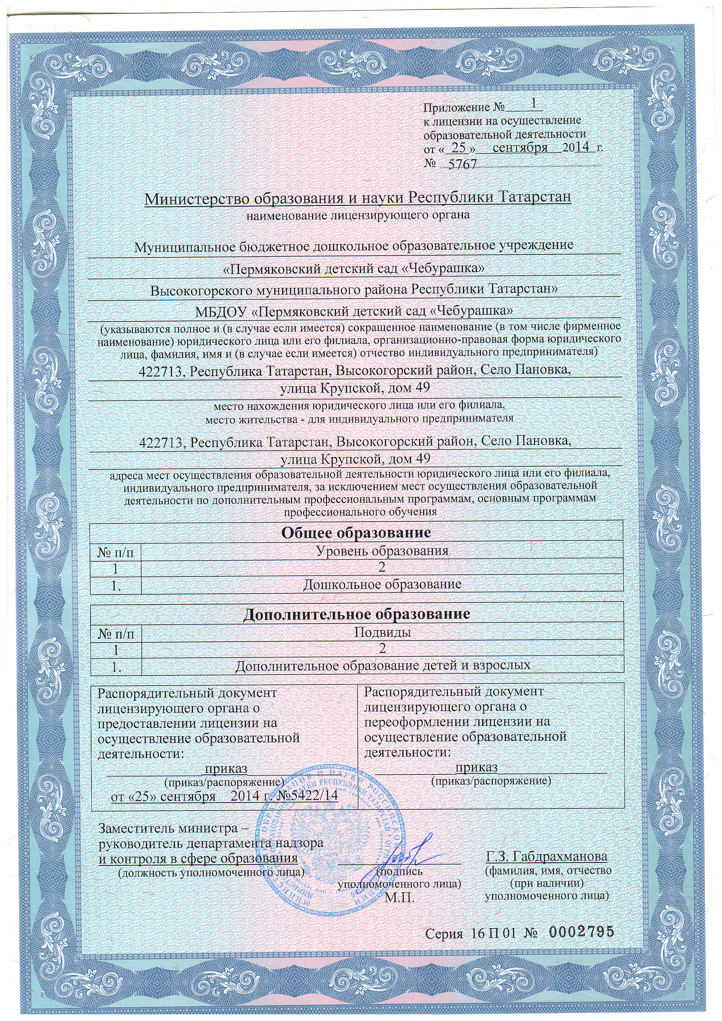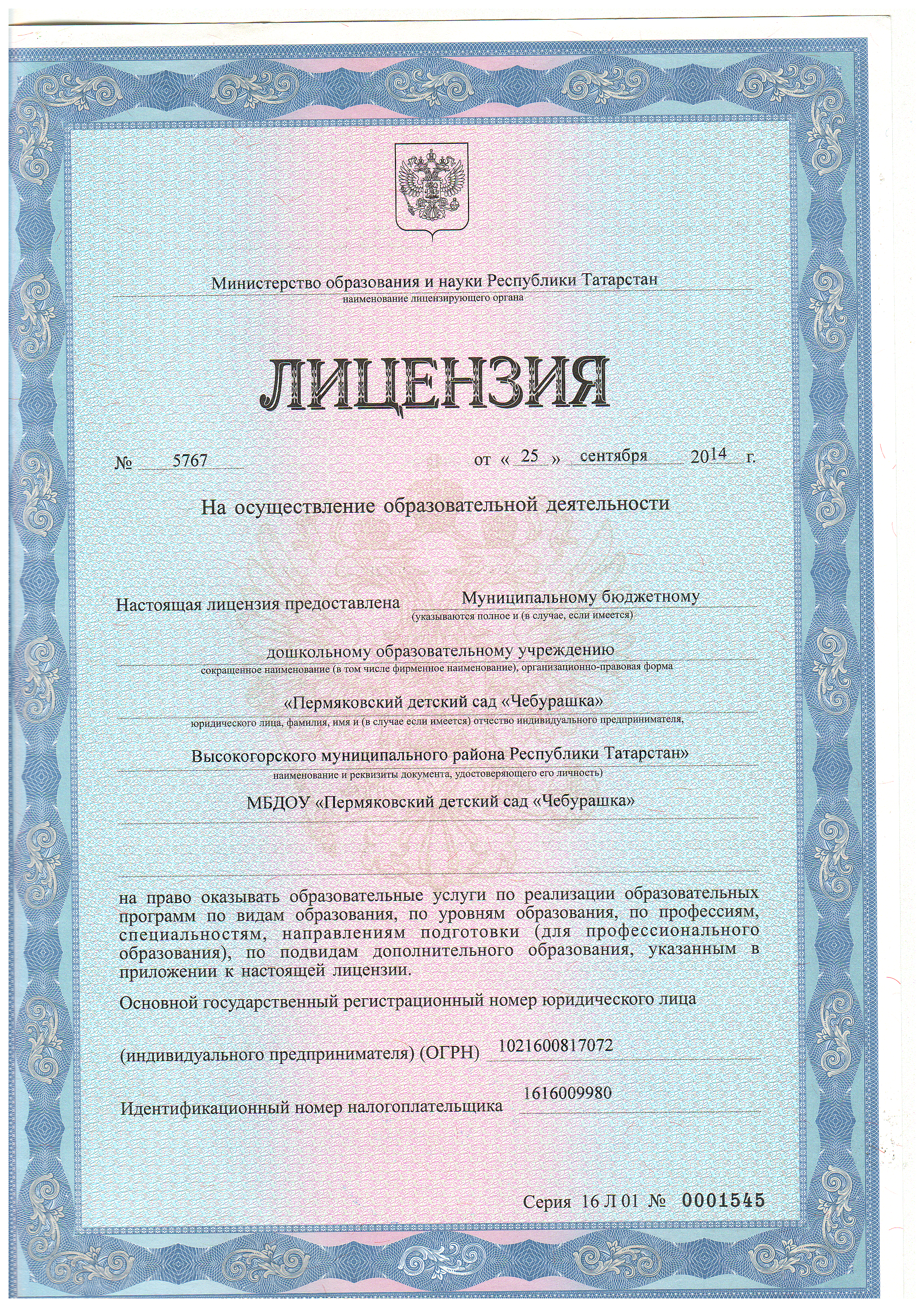 Муниципальное бюджетное дошкольное образовательное учреждение «Пермяковский детский сад «Чебурашка» Высокогорского муниципального района Республики Татарстан» .Татарстан Республикасы Биектау муниципаль районынын "Пермяк "Чебурашка" балалар бакчасы", мэктэпкэчэ белем биру муниципаль бюджет учреждениесе.