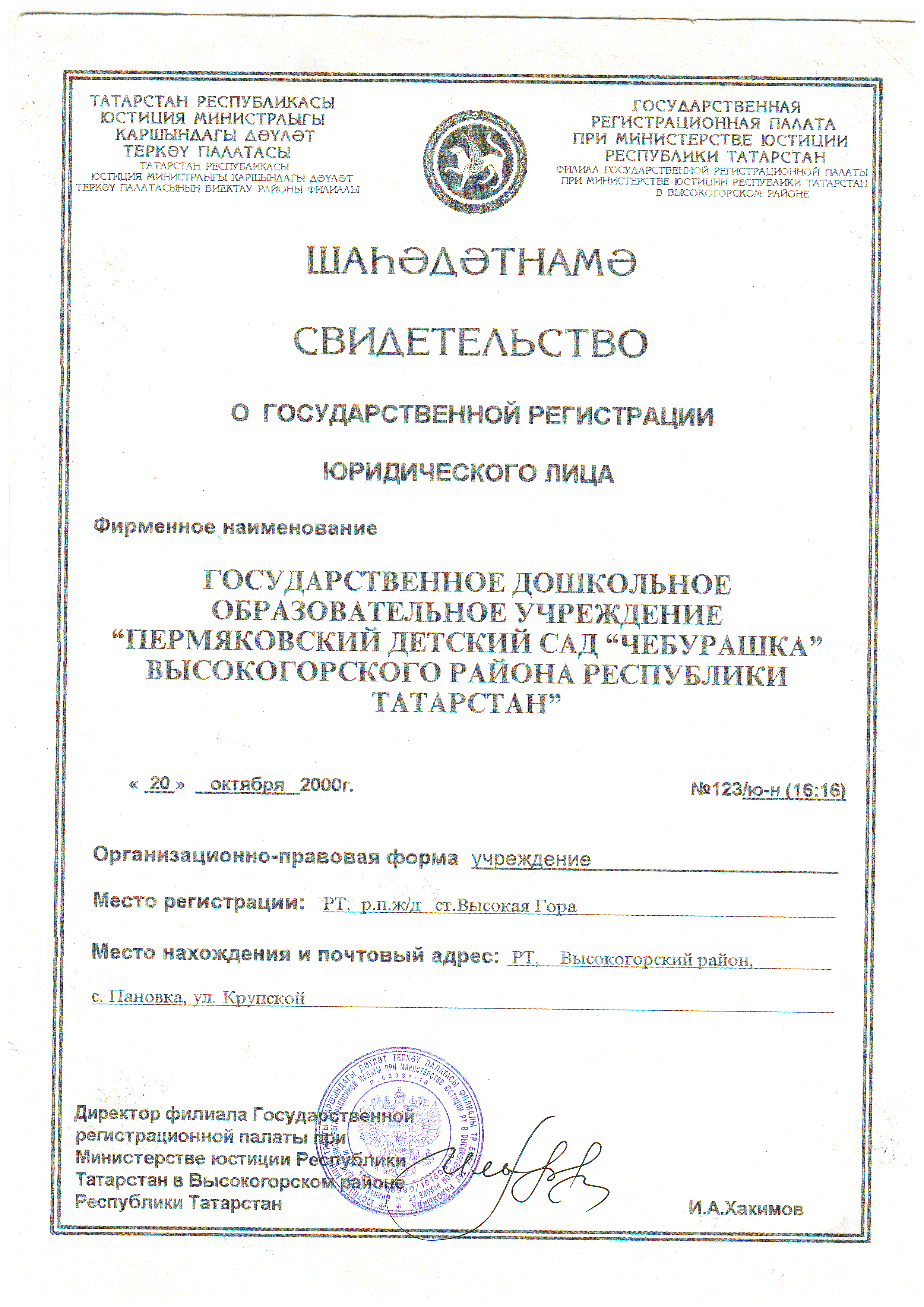 СВИДЕТЕЛЬСТВО О ГОСУДАРСТВЕННОЙ РЕГИСТРАЦИИ ЮРИДИЧЕСКОГО ЛИЦА