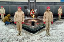 возложили цветы к памятнику и стояли в почетном карауле у Вечного