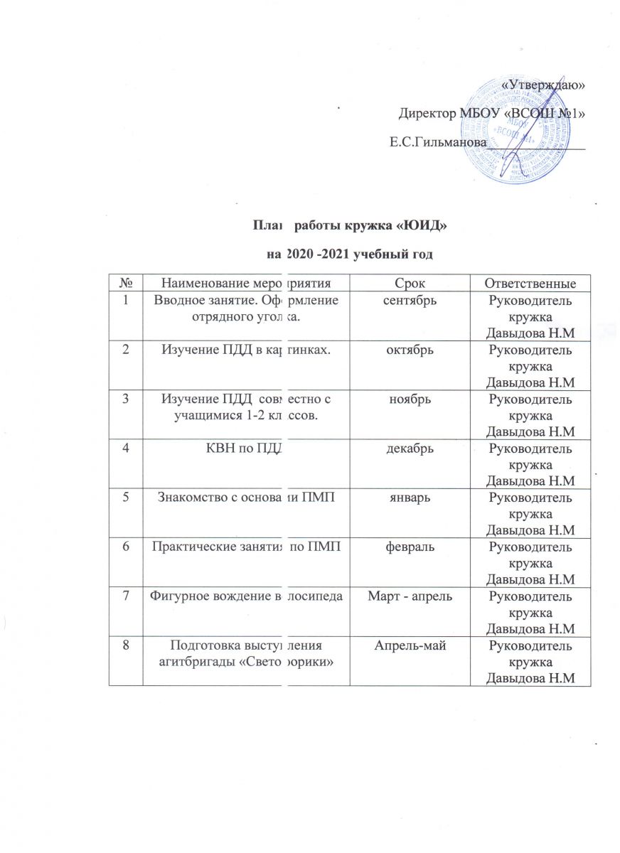 План ЮИД на 2020-2021 учебный год