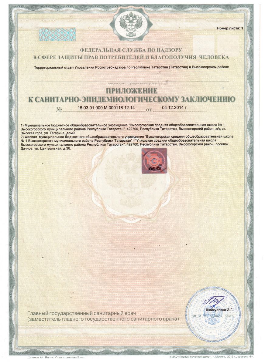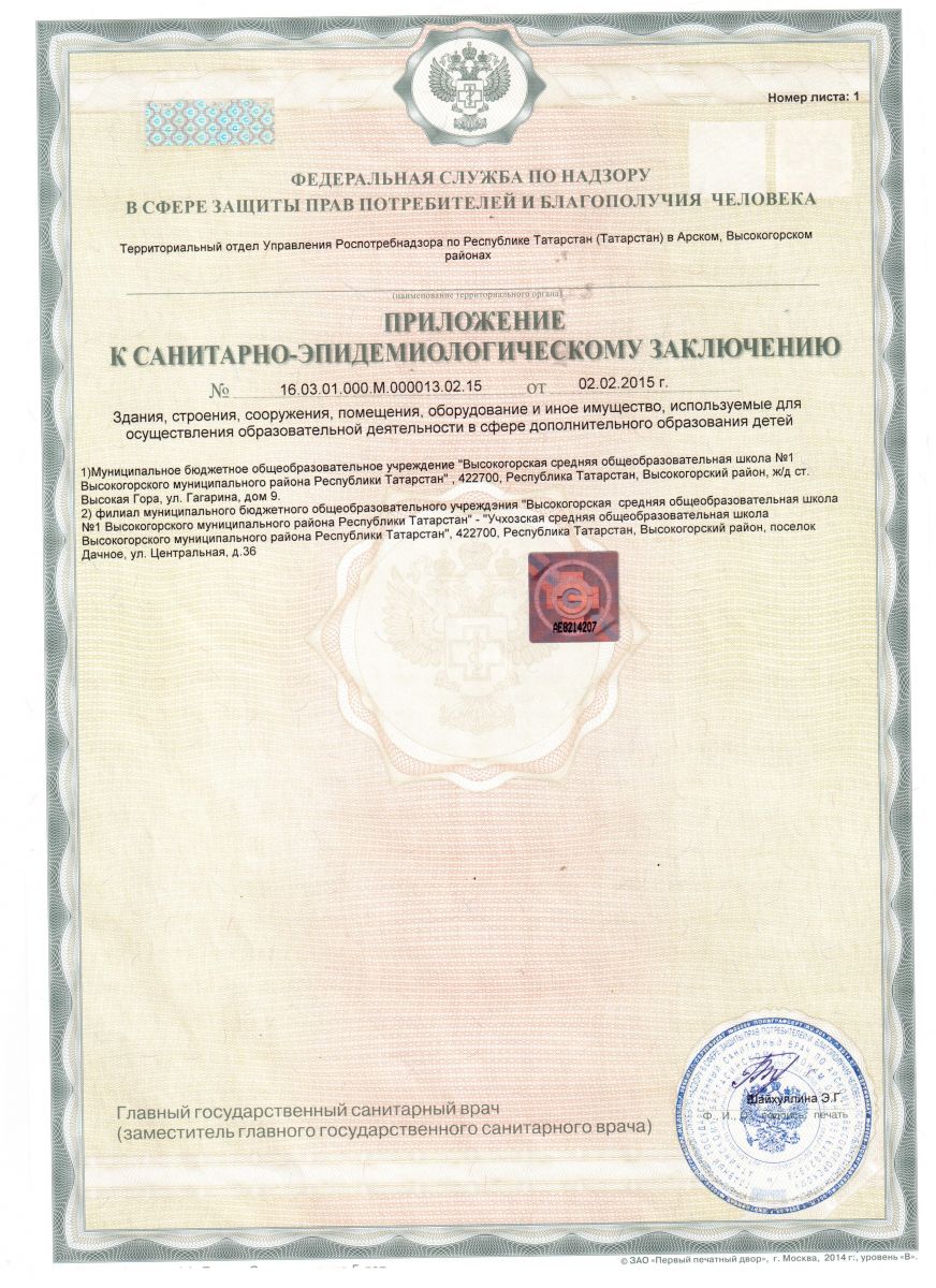 Приложение к санитарно - эпидемиологическому заключению 2014 г.