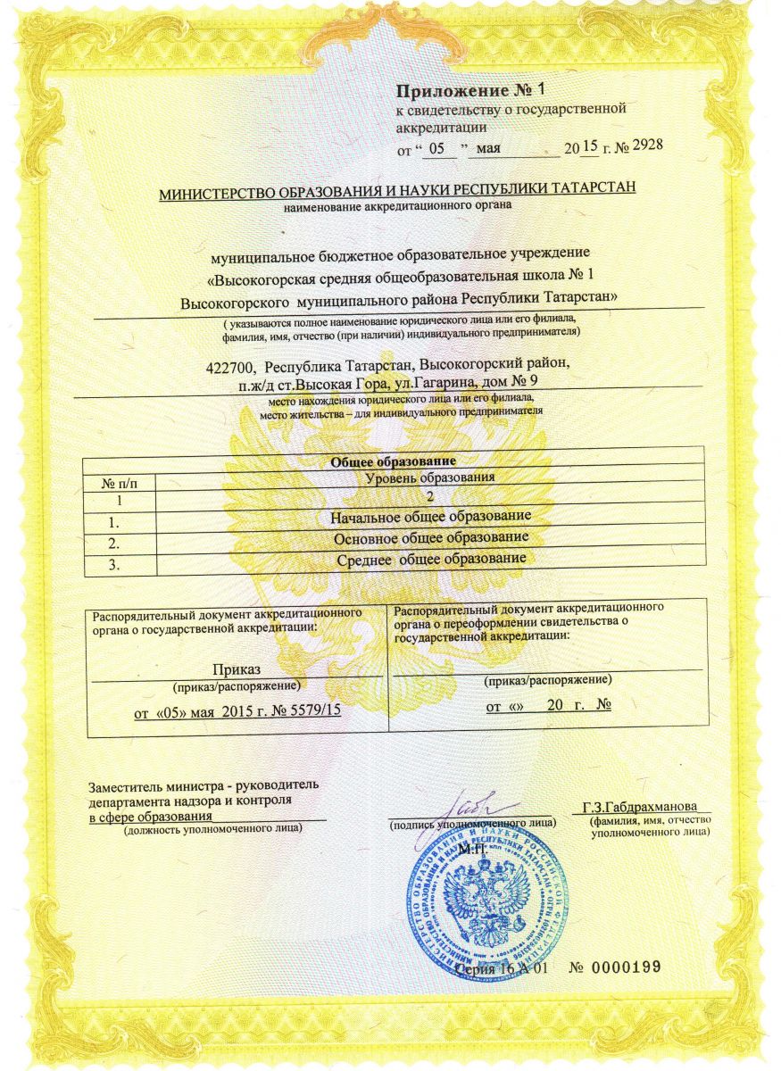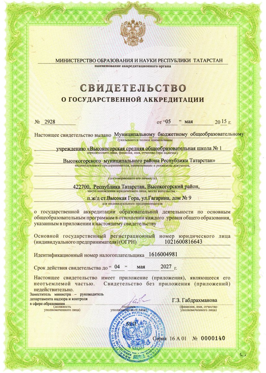 Муниципальное бюджетное общеобразовательное учреждение «Высокогорская средняя общеобразовательная школа №1 Высокогорского муниципального района Республики Татарстан»