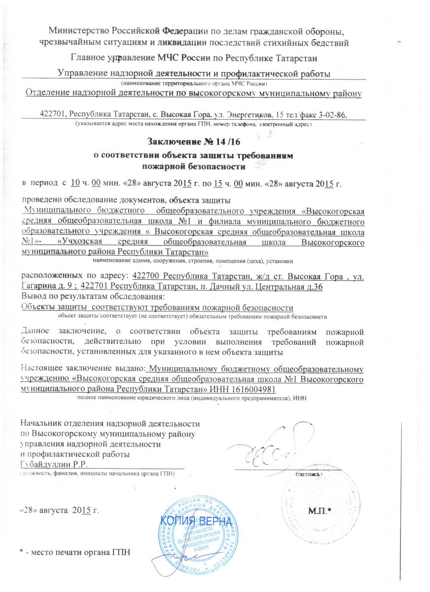 | Адрес: | 422700, РТ, Высокогорский район, п. ж/д ст. Высокая Гора, ул. Гагарина, д. 9 (первое здание); ул. Советская д. 17 (второе здание) |