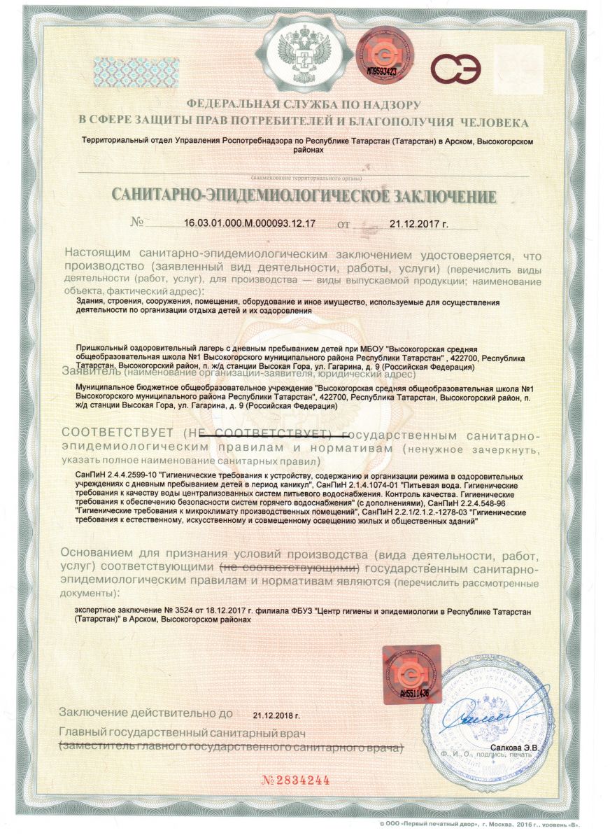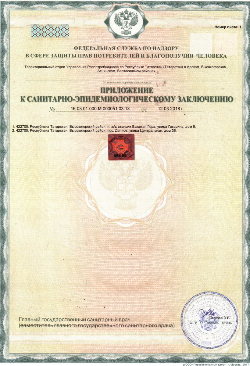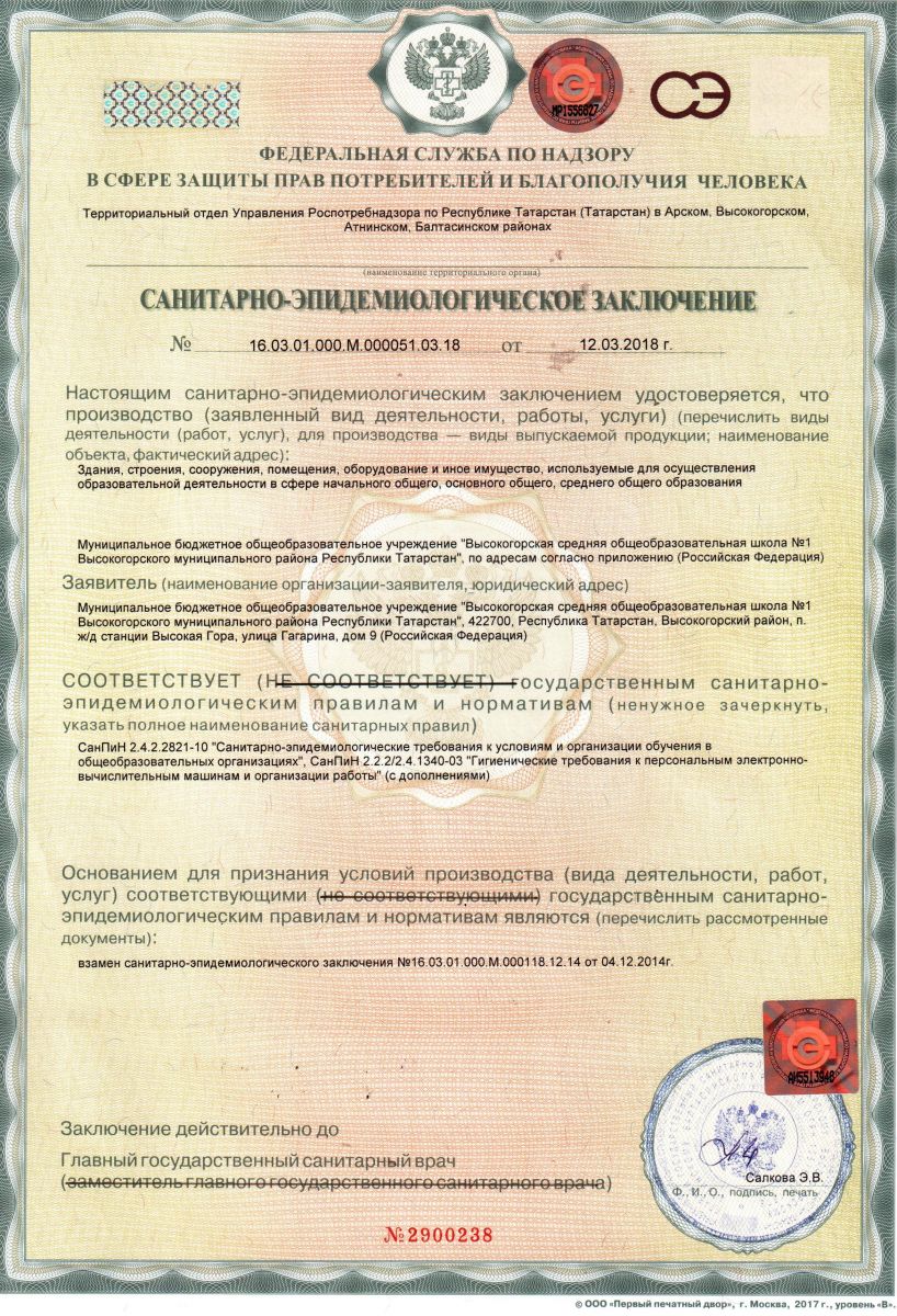 САНИТАРНО-ЭПИДЕМИОЛОГИЧЕСКОЕ ЗАКЛЮЧЕНИЕ ОТ 12.03.2018 Г.