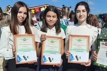 Поздравляем наших учениц, победителей и призеров заключительного этапа республиканской олимпиады по родному языку Сайпееву Гулину, Бабутаеву Алию, Саляхиеву Алсу. В День защиты детей участницы получили денежную премию от главы Высокогорского муниципального района.Так держать! (Руководитель: Ахмадуллина С.Н.)