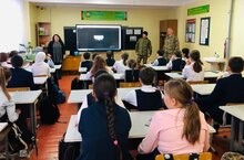 Бүген безнең мәктәптә 5б сыйныф укучысының әтисе белән очрашу узды. Ул - СВО катнашучысы. Солдатларга һәртөрле ярдәм күрсәтә торган, күңелне җылыта торган хатлар турында әйтергә дип, балалар янына килдем. Динар Рәшит улы мәктәптә "Әһәмиятле сөйләшү" узуын карады, байракны алганнан соң, РФ һәм ТР гимннарын бергә башкарды.