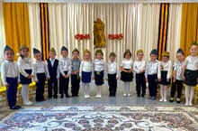 23 февраль бәйрәме- балаларда патриотизм хисе тәрбияләү, Ватаныбызның иң яхшы традицияләренә катнашу, балаларда Ватанны саклаучылар өчен горурлык формалаштыру өчен яхшы сәбәп.Безнең балалар бакчасында да Ватанны саклаучылар көненә багышланган бәйрәм булды. Ул төрле эстафеталардан һәм конкурслардан торды. Балалар шигырьләр сөйләделәр, җырлар җырладылар, биеделәр, кызлар малайлар өчен Шаян частушкалар башкардылар. Ә кадерле бабайларына һәм әтиләренә бүләк итеп балалар якты биюләр башкардылар, үз куллары белән ясалган котлау открыткаларын тапшырдылар.