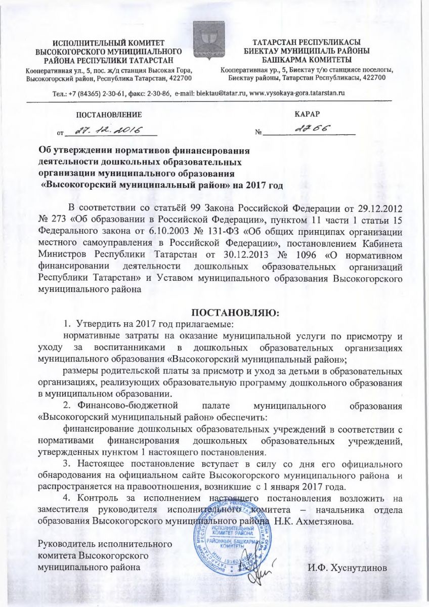 Постановление о повышении родительской платы за присмотр и уход за детьми в образовательных организация