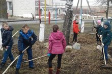 С помощью учеников активно ведутся весенние работы на пришкольном участке.