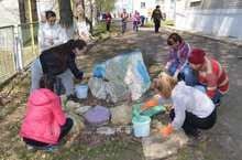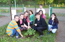 Сегодня ученики нашей школы организовано вышли на средник по уборке территории, выкапыванию и декорированию цветников у школы.