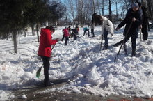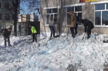 Сегодня, 14.03.2015 года, все учащиеся 5-11 классов участвовали в субботнике по уборке территории от снега.
