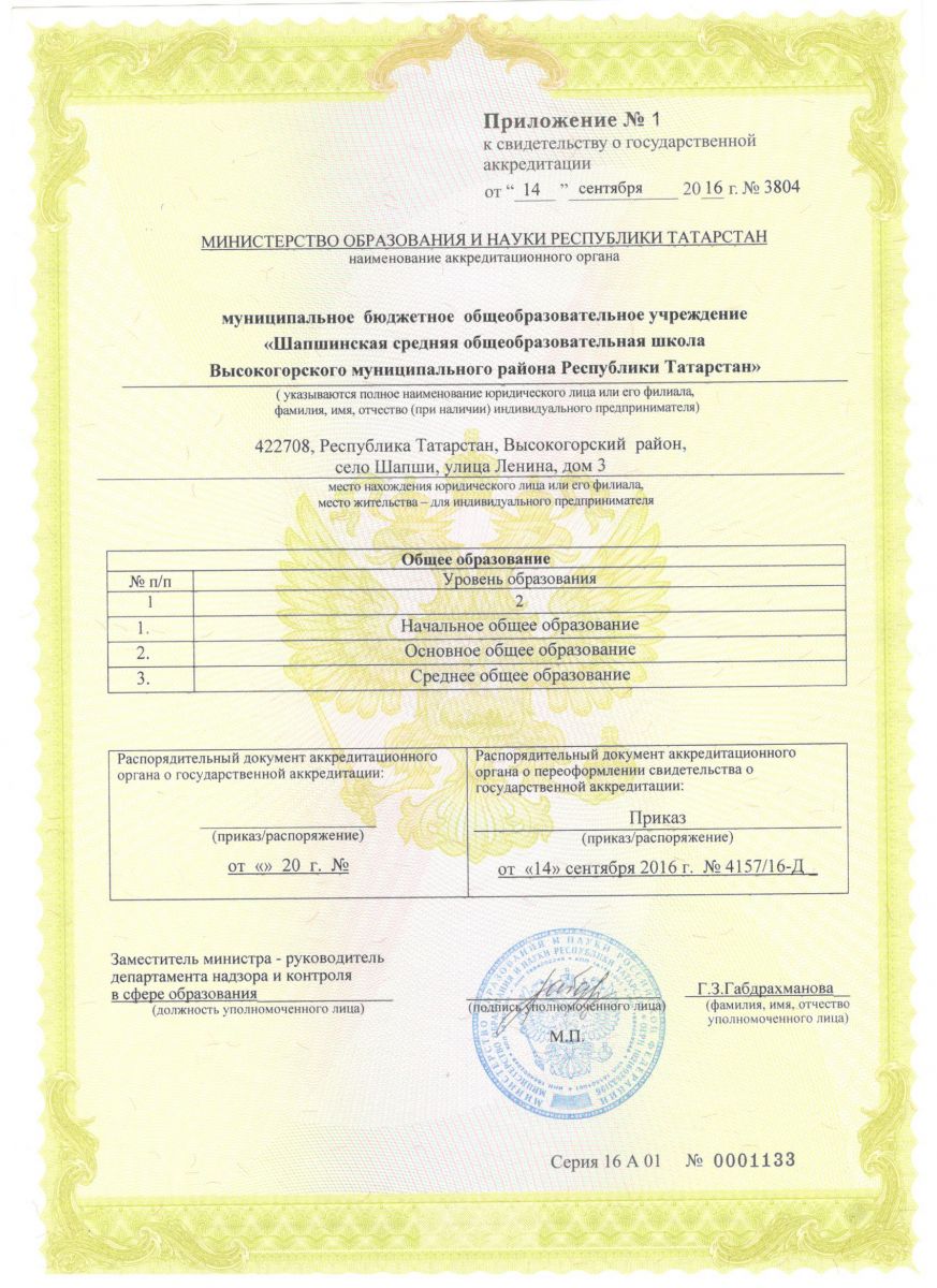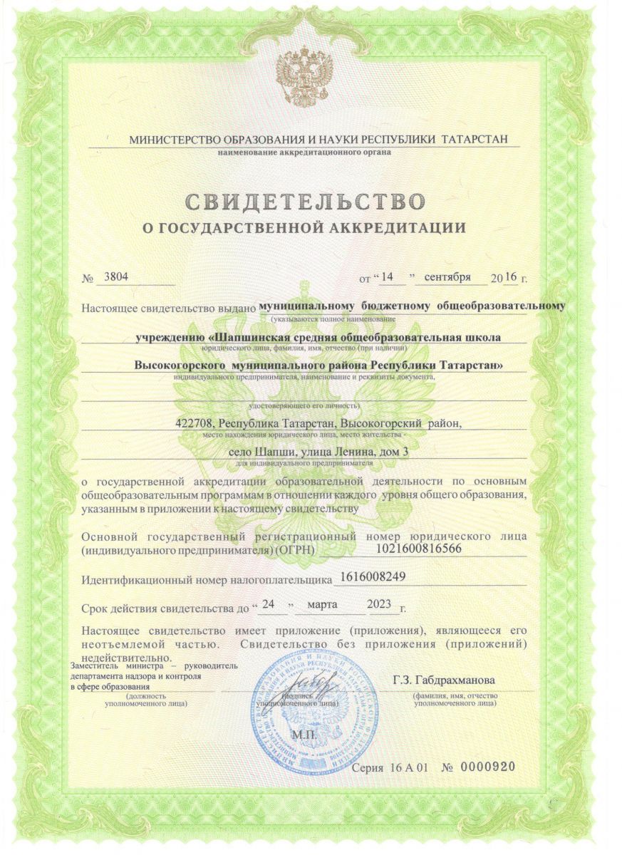 Муниципальное бюджетное общеобразовательное учреждение «Шапшинская средняя общеобразовательная школа Высокогорского муниципального района Республики Татарстан"/«Татарстан Республикасы Биектау муниципаль районының Шәпше гомуми урта белем бирү мәктәбе» муниципаль бюджет белем бирү учреждениесе