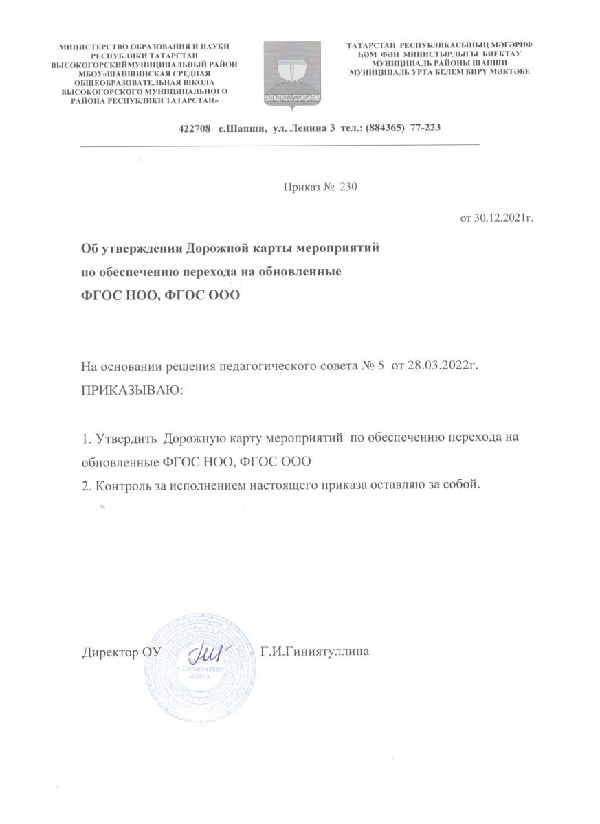Об утверждении Дорожной карты мероприятий по обеспечению перехода на обновленные ФГОС НОО,ФГОС ООО