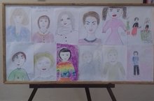 На 1 этаже школы была организована выставка рисунков на тему: "Моя любимая мамочка".