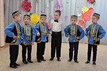 пригласив их сыграть в оркестре на музыкальных инструментах. Завершилось праздничное мероприятие традиционно, вручением подарков и общим фото!Мәктәпкә әзерлек төркеме балалары "Безнең ишегалдында" дип аталган бәйрәм әзерләделәр. Балалар бәйрәм кунакларын шигырь сөйләп, җырлар җырлап, уеннар уйнап котладылар. Әниләрне матурлык салонына алып бардылар, малайлар джентельмен биюен биеделәр. Лиана Әхмәтшина көнчыгыш биюен башкарды. Яраткан әбиләрен дә бүләксез калдырмадылар. Аларны музыка уен коралларында уйнарга чакырдылар. Бәйрәм бүләкләр бирү һәм фотога төшү белән тәмамланды!