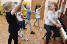 Кружок по вокалу "Весёлые нотки". На занятиях дети учатся слушать музыку, запоминать мелодии, чётко произносить звуки, петь. В распевках дети рукой показывают насколько высоко поднимается их голос. С помощью дыхательных упражнений они укрепляют голос и легочную систему. В логопедических песенках отрабатывают произношение согласных шипящих, глухих звуков. Во время исполнения песен дети эмоционально отзываются, показывая простые движения - приёмы актерского мастерства.