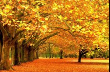 По листве тихонько кистью проводила: