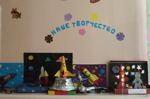 Сегодня в нашем детском саду стартовала акция "!08 минут вместе с Гагариным!". В рамках акции прошла выставка рисунков и поделок, изготовленных детьми совместно с родителями.