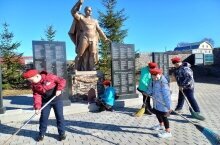 Мәктәбебез яшь армиячеләре һәйкәлгә даими рәвештә шефлык итәләр: аның торышын күзәтәләр, митинглар үткәргәндә тантаналы каравылда торалар. Бүген дә “Геройга исемен кайтар” акциясе кысаларында һәйкәл территориясен чистартуны Житэкчелэре: Гарипова К.Б. -
