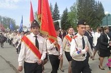 Учащиеся школы приняли участие в Параде Победы района, где прошли в колонне Бессмертного полка.