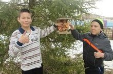 Учащиеся Усадской школы вместе с преподавателем ОБЖ Валиуллиным Р.А. развесили скворечники на территории сельского поселения Усады.