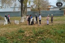 Мәктәп яны территориясен җыештыру буенча хезмәт десанты. Көзге игелек атнасында катнашабыз.