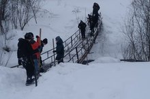 Трудовой десант. Юнармейцы Усадской школы очистили от снега пешеходный мост через реку Сулу и подходы к нему.