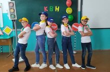 Команда КВН "Обгоняй-ка" принимает участие в районном конкурсе "Клуб весёлых и находчивых" среди отрядов ЮИД.