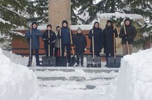 Сегодня, активисты 8 и 10 классов "Усадская СОШ" вместе с учителем физкультуры Мухаметвалиевой К.И. приняли участие в акции "Дорога к обелиску" - очистили снег на территории памятника воинам, павшим в ВОВ.